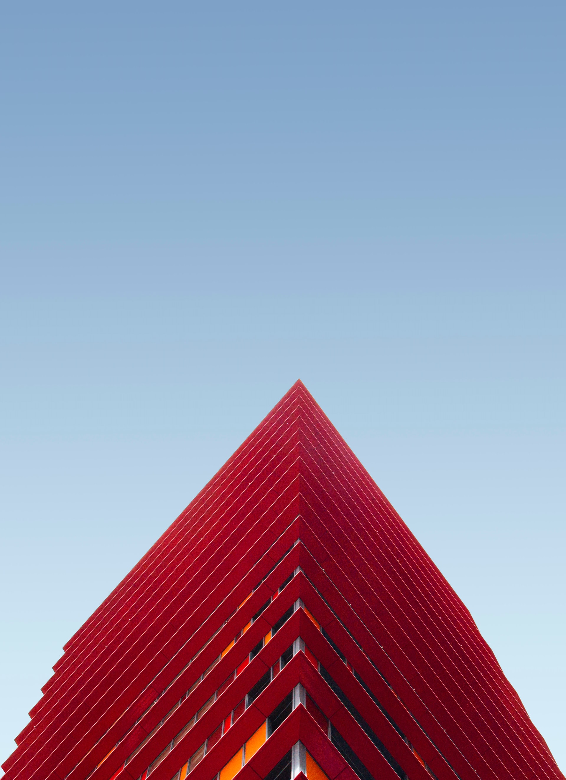 Moderne rote Architektur vor blauem Himmel Moderne rote Architektur vor blauem Himmel